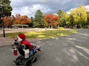 ■車いすで行く「アメリカ楓通り」20℃紅葉 クリスマスツリー